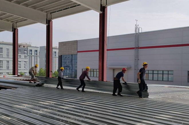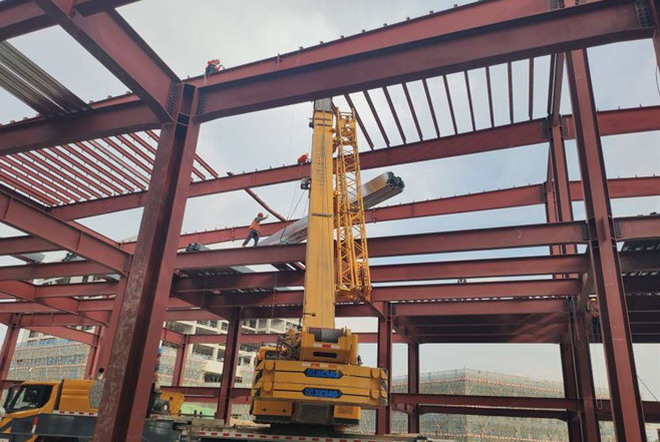 隆基樂(lè)葉鋼結(jié)構(gòu)廠房梁安裝與甩料